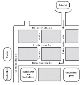 Fulda liegt für Bahnfahrer ideal, an der ICE Strecke München - Hamburg und Frankfurt - Berlin sowie Dresden / Leipzig - Frankfurt. Zugfahrer erhalten bei der Bahn eine aktuelle Fahrplanauskunft.