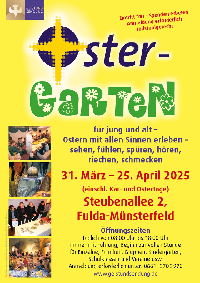 Mit Herz und Verstand die Ereignisse des Leidens und Sterbens Jesu Christi und seiner Auferstehung begreifen und erfahren, das ist der bekannte Sinnenpark "Ostergarten". Eine spannende Zeit- und Gefühlsreise mit verschiedenen Hör- und Spielszenen!